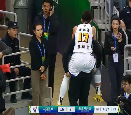 不过,广厦队除了输球之外,还有一件事,让王博十分揪心,没错,那就是球队主力后卫孙铭徽,在首节比赛受到了重伤。在第一节比赛,还有5分39秒时,孙铭徽在一次突破上篮的时候,突然崴脚了。